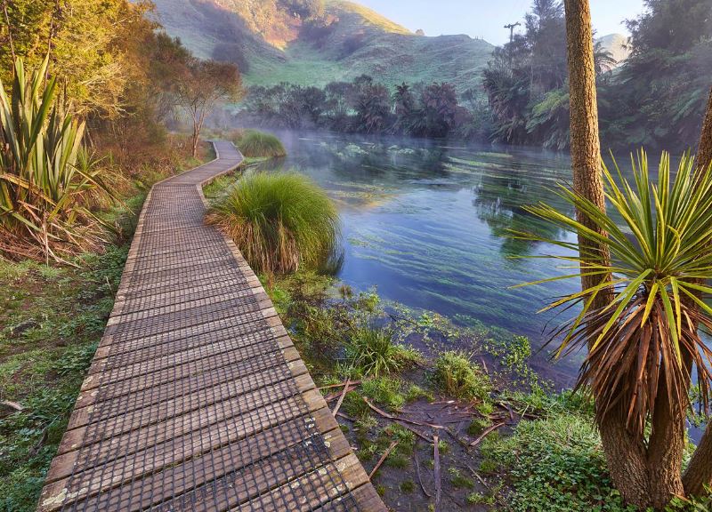 하무라나 스프링스: 천연 오아시스: 로토루아의 수생 보물을 찾는 과정에서 나는 깨끗한 샘물로 유명한 천연 오아시스인 하무라나 샘(Hamurana Springs)을 발견했습니다. 북섬에서 가장 깊은 샘물이 우뚝 솟은 삼나무 사이로 구불구불 이어지는 경치 좋은 산책로인 테와이호우 워크웨이(Te Waihou Walkway)로 흘러 들어갑니다. 맑은 샘물 덕분에 나는 햇빛이 강바닥에서 춤추는 동안 무수한 녹색과 파란색의 색조를 목격할 수 있었습니다. 나뭇잎이 부드럽게 바스락거리는 소리와 토종 새들의 선율적인 울음소리로 강조되는 고요한 분위기는 로토루아의 품 안에 목가적인 휴식처를 만들어 냈습니다.